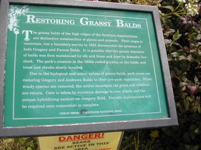 ![]() Sign on top of the bald. Notice the bear warning sign under it. |