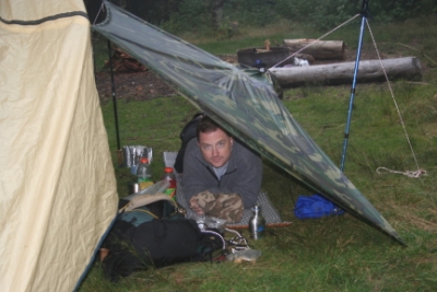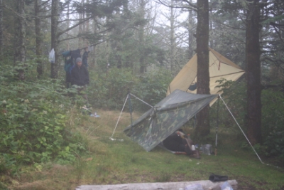 ![]() Everything in camp was wet. John used my tarp to sleep under. |