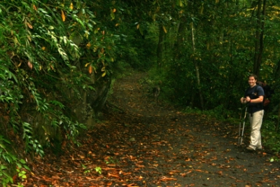 I traded in the Suburban, so we had to take two cars this time. John drove his Cherokee and I drove my father's PT Cruiser. Tim and Trey stayed at John's house near Birmingham Thursday night while Richard and Zach choose to leave earlier Friday morning. Richard and Zach made it a point to stop and get something to eat before hitting the trail. It rained on us off and on during the whole trip. A couple of miles in, we took a short break. Tim found a lizard and put it on Trey's pack. While we were all laughing at Trey freaking out, I noticed a deer up the trail from John. John decided to taunt it and the deer decided we were in its way. It charged down the trail at us and jumped a log where the trail took a 90 bend on to a bridge. I guess I’m not the pro-photographer type; my instinct to get out of the way overruled my desire to snap a picture. After a soggy night with light rain, John and Trey decided they'd had enough. Tim took off down the trail with John's keys while the rest of us were still packing up. When we caught up to Tim, about a mile down the trail, John and Trey still wanted to leave. Tim gave John his keys, we made fun of them, and they left. The hike wasn't that bad until the last mile and a half to the summit of Mount Sterling. The old fire tower was cool, but the cloud cover made it impossible to get any good pictures. Tim, Zach, and I listened to the Auburn/Tennessee game on the radio while relaxing in camp. The hike wasn't too bad, but the rain took away from our enjoyment of the trip overall. There are several possible day hikes to the fire tower and would like to go back when the weather is nicer. |